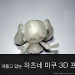 파를 들고 있는(파돌리기송) 하츠네 미쿠 피규어를 프린팅 해보았다! 이번에는 유명하고 대부분의 사람이 알고 있는 보컬로이드 '하츠네 미쿠'를 3D 프린터로 프린트 해보았습니다. 원래는 이렇게 생겼답니다~ 『파들고 있는 하츠네 미쿠』 프린팅 하는데 걸린 시간은 총 5시간 입니다! 필라멘트는 PLA를 사용했으며, 레이어 당 0.1mm로 출력하였습니다. 아직 후 과정 처리를 하지 않았습니다 :( 기본적으로 두 개의 파를 들고 있습니다. 출력시 안에 있던 필라멘트가 타는 현상이 발생해 머리에 검은 자국이… (여러분 화면에 묻은 게 절대로 아닙니다.) 측면을 보면 필라멘트가 흘려 내려 다듬어 줘야 하는 부분이 보이네요. 또 서포트가 제거된 부분이 거칠어 보입니다. 얼굴 표정은 3D 모델링에서 없더라고요… 아쉽습니..